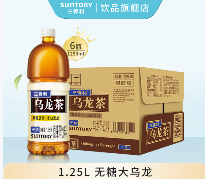 此外,整个茶饮赛道的竞争也变得越发激烈,同质化竞争趋势明显。无糖茶赛道的竞争更为拥挤,已经逐渐进入到了存量时期。三得利今年也在某平台上推出了1.25升装无糖乌龙茶优惠购买的活动,一箱6瓶装只需33元,各种活动直接对标东方树叶。