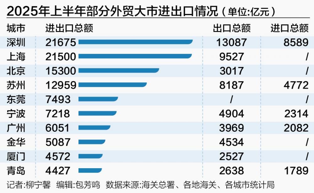 随着7月22日深圳公布外贸数据,全国主要外贸城市上半年进出口情况已陆续揭晓。
