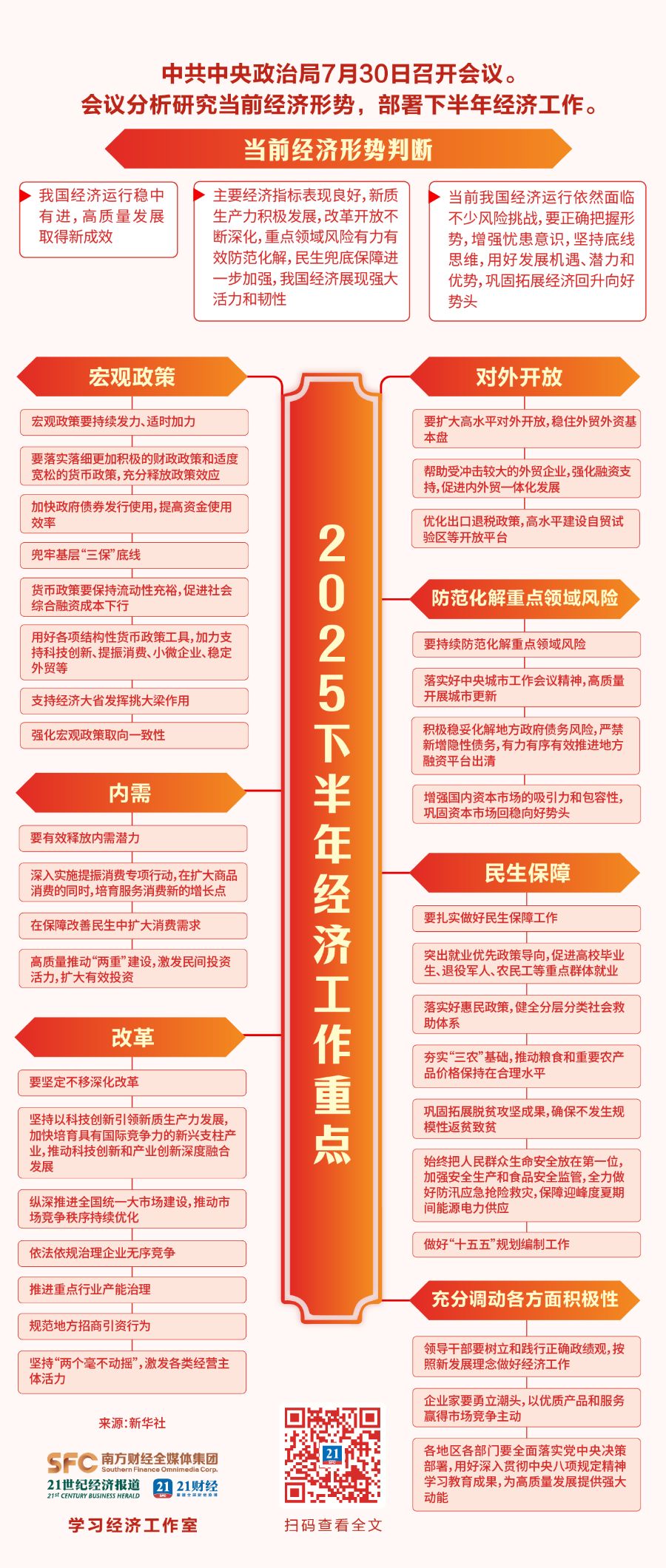 中共中央政治局7月30日召开会议。会议分析研究当前经济形势,部署下半年经济工作。