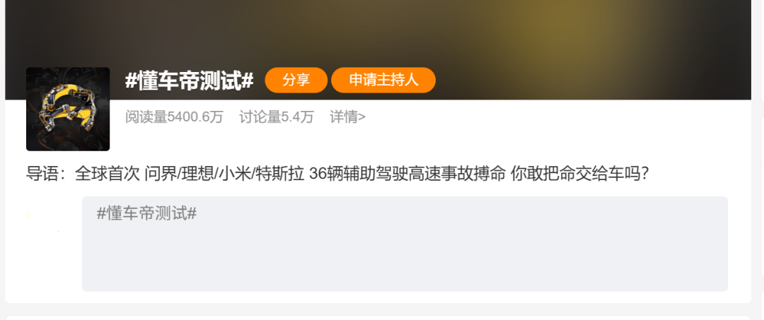 再加上“国产智驾全军覆没”,“特斯拉充值特调”的话题,最终引发了汽车圈激烈的情绪冲突,导致用户站队、测试争议、热搜霸榜。平时不看汽车话题的人也时不时会聊上几句,只能说懂车帝这次是一次成功的内容爆款,远超懂车帝以往各种测试。