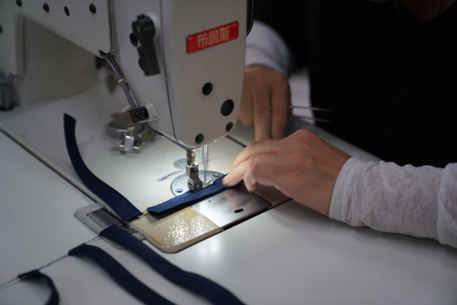 (帽子工厂生产线上,师傅在赶一批急单。丛森摄)