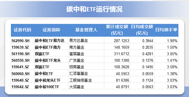 8只环交所碳中和ETF累计成交额达1118.58亿元