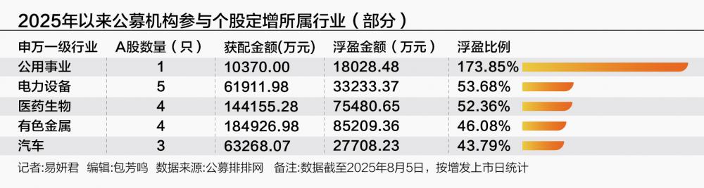 整体上看,今年内,参与定增的公募机构收获颇丰。