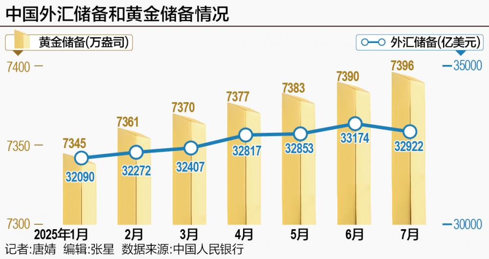 8月7日,国家外汇管理局统计数据显示,截至2025年7月末,我国外汇储备规模为32922亿美元,较6月末下降252亿美元,降幅为0.76%。这也是我国外汇储备连续20个月保持在3.2万亿美元以上。