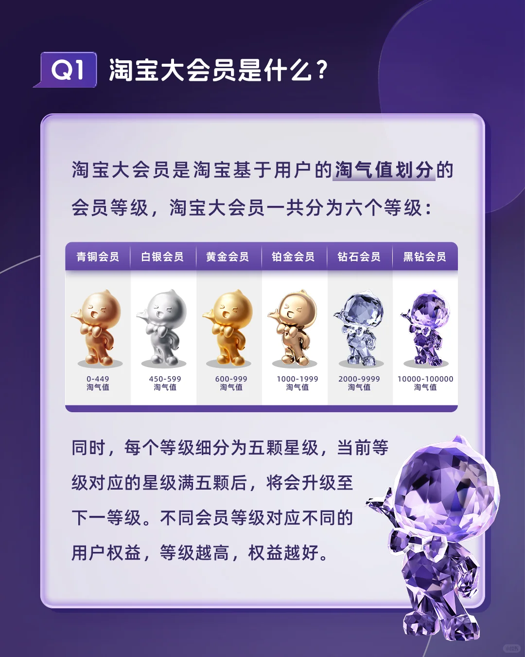 不过,关停盒马X会员店并不意味着盒马放弃会员模式,恰恰相反,淘宝在近日上线了全新的“大会员”体系,其中包括青铜、白银、黄金、铂金、钻石、黑钻6个会员等级。