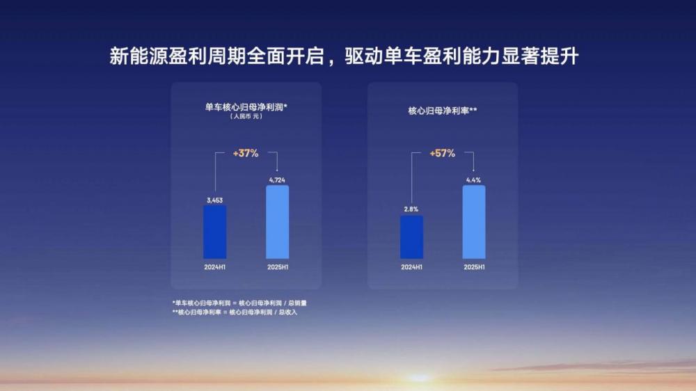 与此同时,新能源品牌的盈利也为吉利带来利润新增量。吉利高层在财报会上表示,在新能源车型的拉动下,新能源盈利正驱动单车盈利。今年上半年,吉利单车核心归母净利润为4724元,相较于去年的3453元提升了37%。