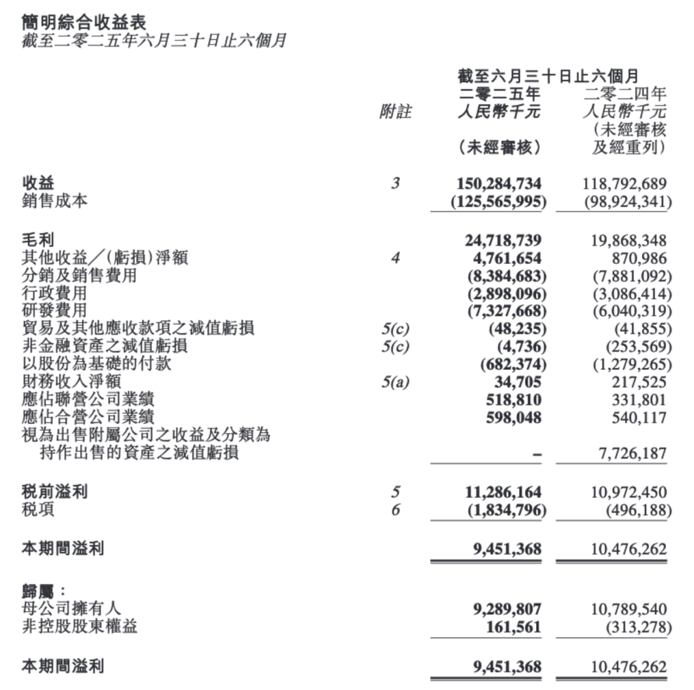 协同效应带来的降本增效,正在持续优化吉利的利润结构。 今年上半年,吉利的核心归母净利润达66.6亿元,同比大幅增长102%。这意味着,在剔除外币汇兑损益等非核心项目影响后,吉利依靠核心的造车、卖车等主营业务所实现的盈利增长了一倍。这一数据比仅看同比下降14%的归母净利润,更能真实反映出公司可持续经营状况的显著提升与强劲改善。