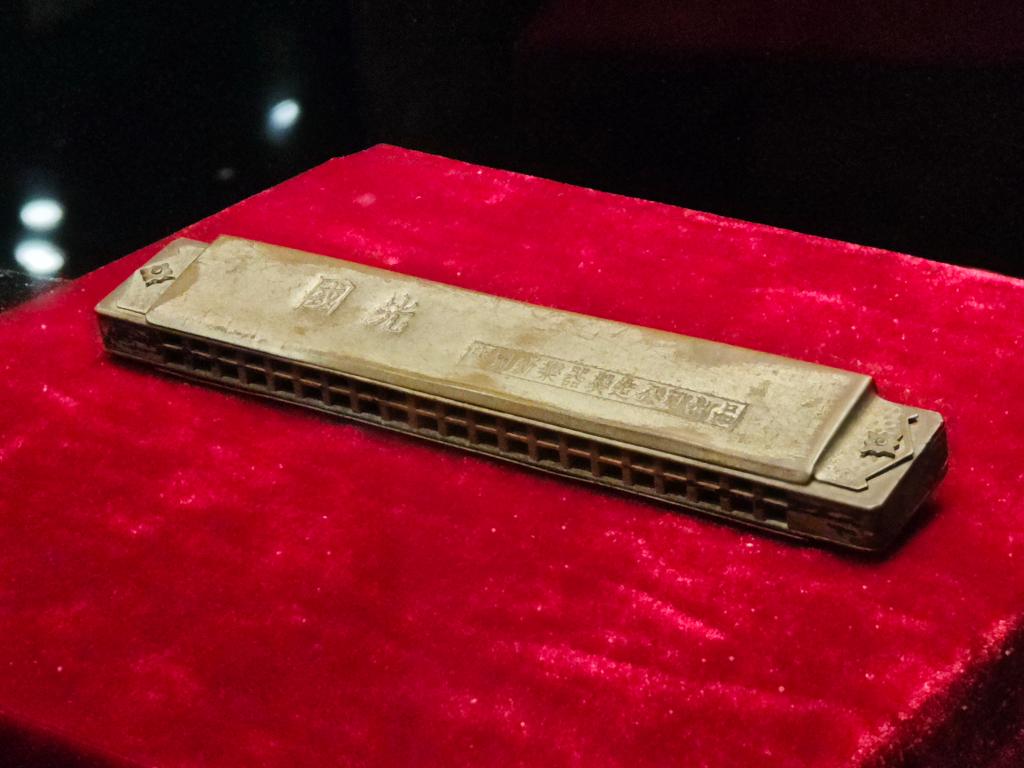 东北抗日联军纪念馆内摆放的杨靖宇将军使用过的同款口琴。新华社记者 唐铭泽 摄
