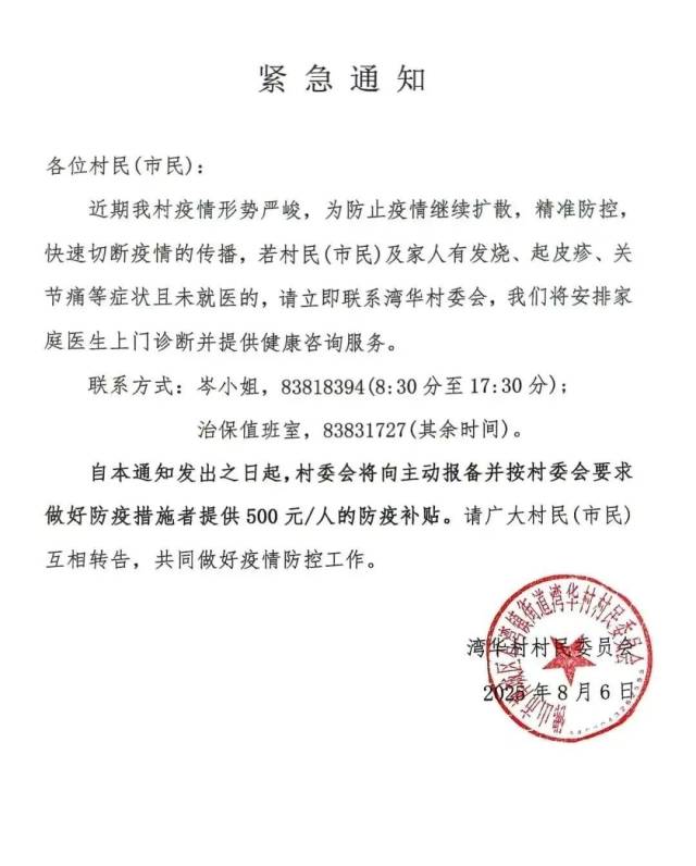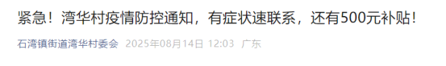 即日起凡主动向村委会报备个人/家庭防疫相关信息,并严格按村委会后续防疫指引落实相关措施的村民,经核实确认后,可获得500元/人的防疫补贴!