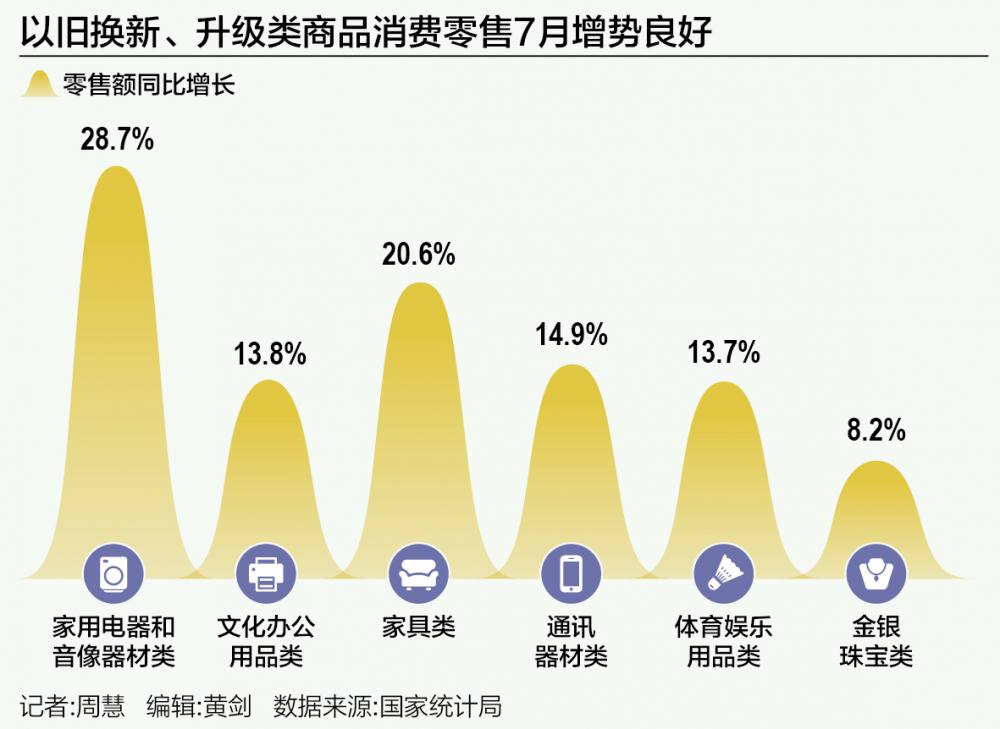 付凌晖表示,从商品零售看,以旧换新相关和升级类商品销售较好。