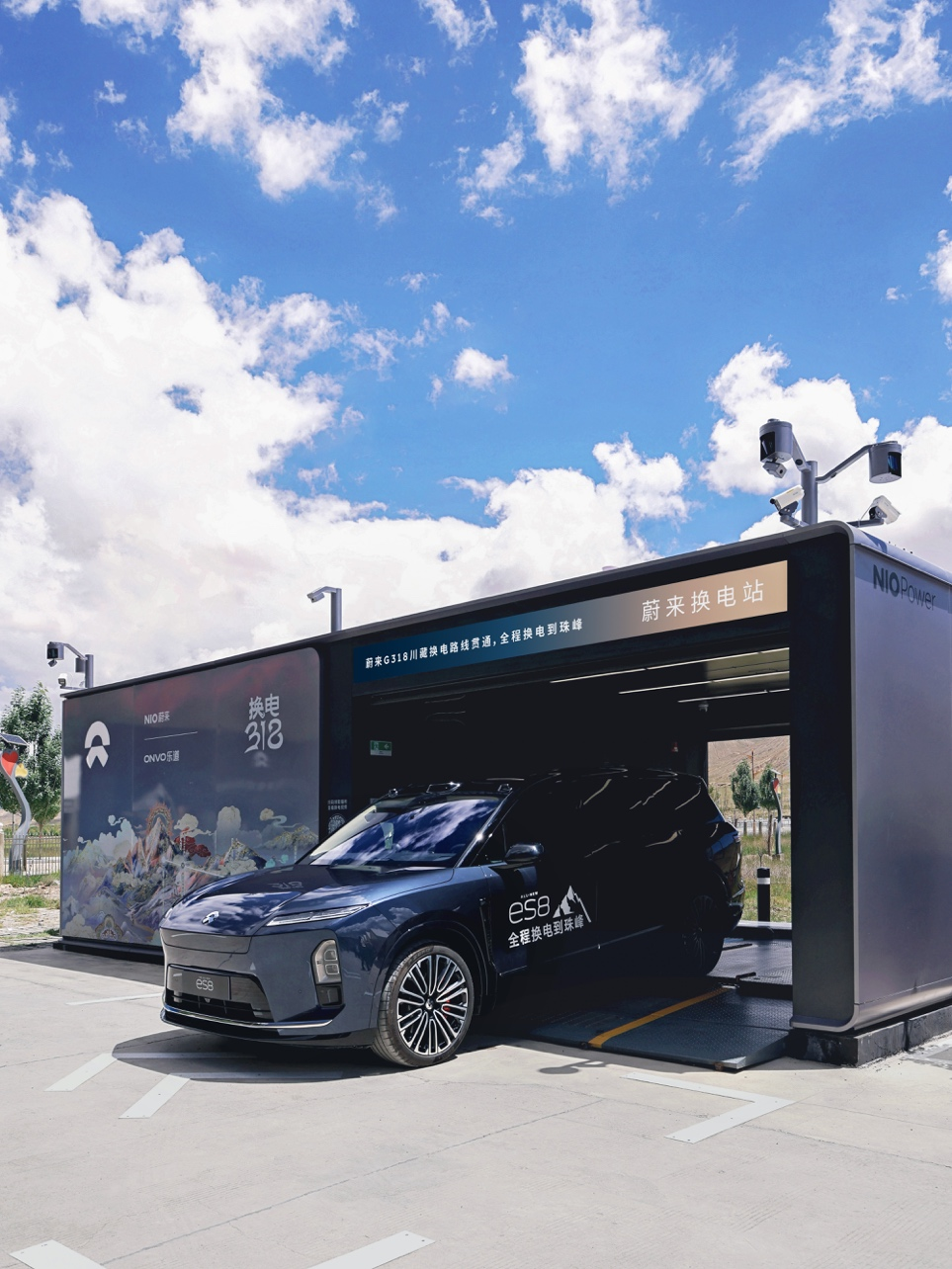 8月16日,西藏自治区日喀则市定日县,随着蔚来定日珠峰换电站显示屏亮起,蔚来在G318川藏线布局的第15座换电站正式上线运营。这里是众多游客去往珠峰大本营的必经之地。这座海拔4300米的换电站正式投入运营,这也标志着G318川藏换电路线全线贯通。