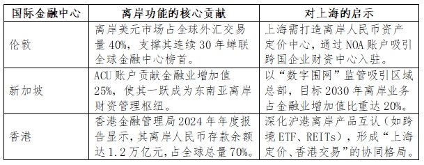 国际经验显示,离岸金融中心被全球接受的主流监管模式有二:一是伦敦“内外一体型”,依托在岸市场深度自然延伸离岸功能,其离岸金融市场涵盖美元信贷(国际清算银行2024年二季度报告显示,伦敦离岸美元贷款规模达6.8万亿美元,占全球35%)、外汇交易(占全球40%)和衍生品交易等多元业态,成为国际金融中心的核心支撑;二是新加坡“账户隔离型”,通过亚洲货币单位(ACU)账户严格隔离在岸与离岸资金,既支撑外资自由流动,又适配离岸债券发行(占东南亚离岸债规模的60%)、跨境财资管理等业务,ACU账户贡献了新加坡金融业增加值的25%。