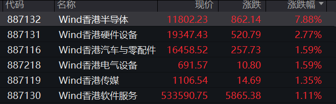 港股半导体概念股集体走强,截至13:14,华虹半导体涨超12%,上海复旦、中芯国际上涨超7%。