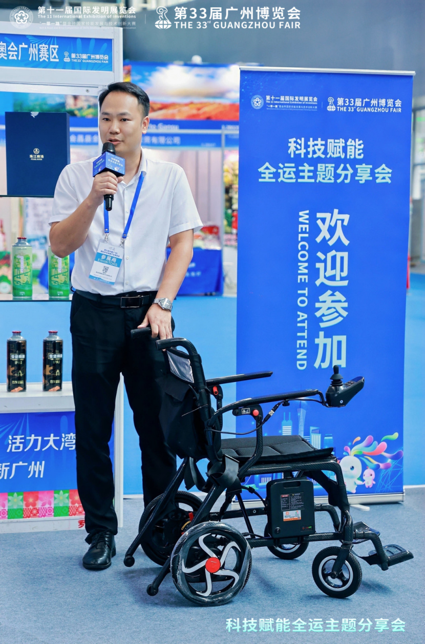 运动员在场上拼搏,离不开科技力量的守护。作为十五运会和残特奥会的独家供应商,佛山市东方医疗设备厂有限公司将为赛事供应轮椅等辅具产品,并提供从赛前适配、赛中保障到赛后维护的一站式服务,让运动员和观众便捷参赛、观赛。该公司区域经理杨建平现场展示了将用于赛事场景的便携式轮椅,这款产品以碳纤维制造,主打轻便与实惠,适用于户外活动场景。杨建平表示,十五运会和残特奥会为广东企业提供了展示自身产品的绝佳平台,让世界看到“广东智造”的新高度。