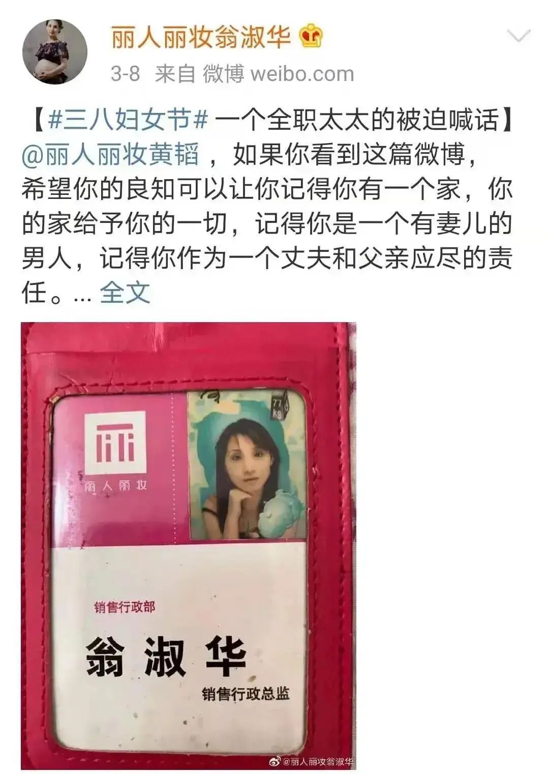 南财快讯记者留意到,2020年9月29日,丽人丽妆登陆上交所主板。但上市仅半年后,2021年3月8日,翁淑华就曾通过微博喊话,称希望黄韬“记得你有一个家,你的家给予你的一切,请得你是一个有妻儿的男人,记得你作为一个丈夫和父亲应尽的责任。”2023年11月21日,黄韬和翁淑华通过法院判决离婚。