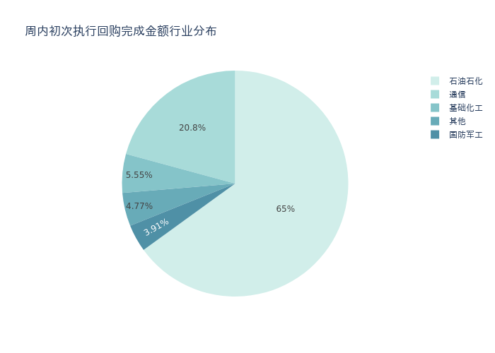 按照初次执行金额所在不同行业分布,金额最高的3个行业分别为:石油石化、通信、基础化工,详情见下图: