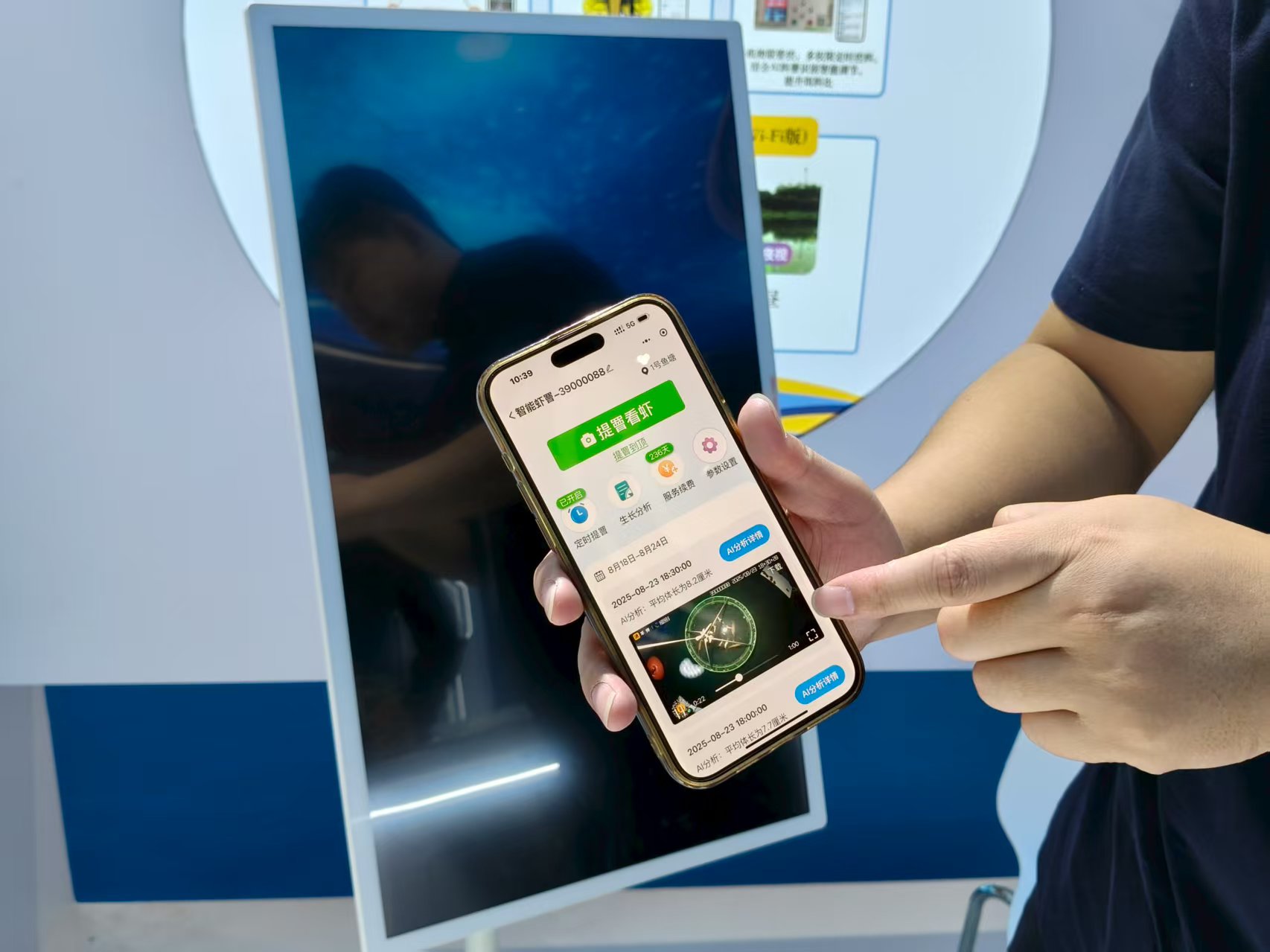 工作人员展示AI虾罾应用界面,郭莎/摄
