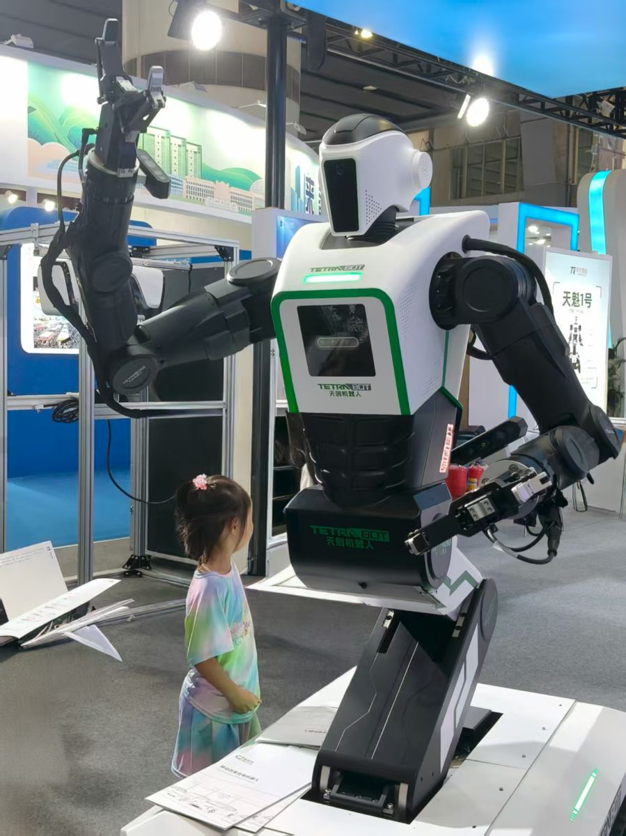 广州天机智能科技有限公司来自白云区,在现场展示了全球首款特种人形机器人“天魁1号”和移动充电机器人“天机充”,“天魁1号”可应用于宽温高湿、强磁多尘、易燃易爆等多种危险复杂场景,“天机充”主要解决固定式充电桩部署中配电容量不足等问题。2024年天机智能在广州的在地产值超过了1300万元。