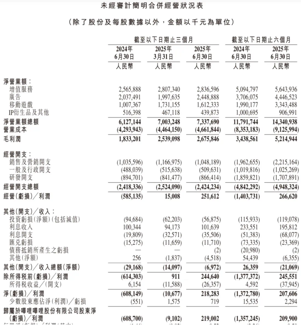 财报还提到,上半年B站IP衍生品及其他业务实现营收9.07亿元,较2024年同期的10亿元,同比减少了9.4%。其中Q2营收4.40亿元,较去同期减少了14.8%。IP 衍生品业务一直是B站挖掘粉丝经济、实现多元化变现的重要途径,其营收下降,反映出B站在这一领域的发展瓶颈。