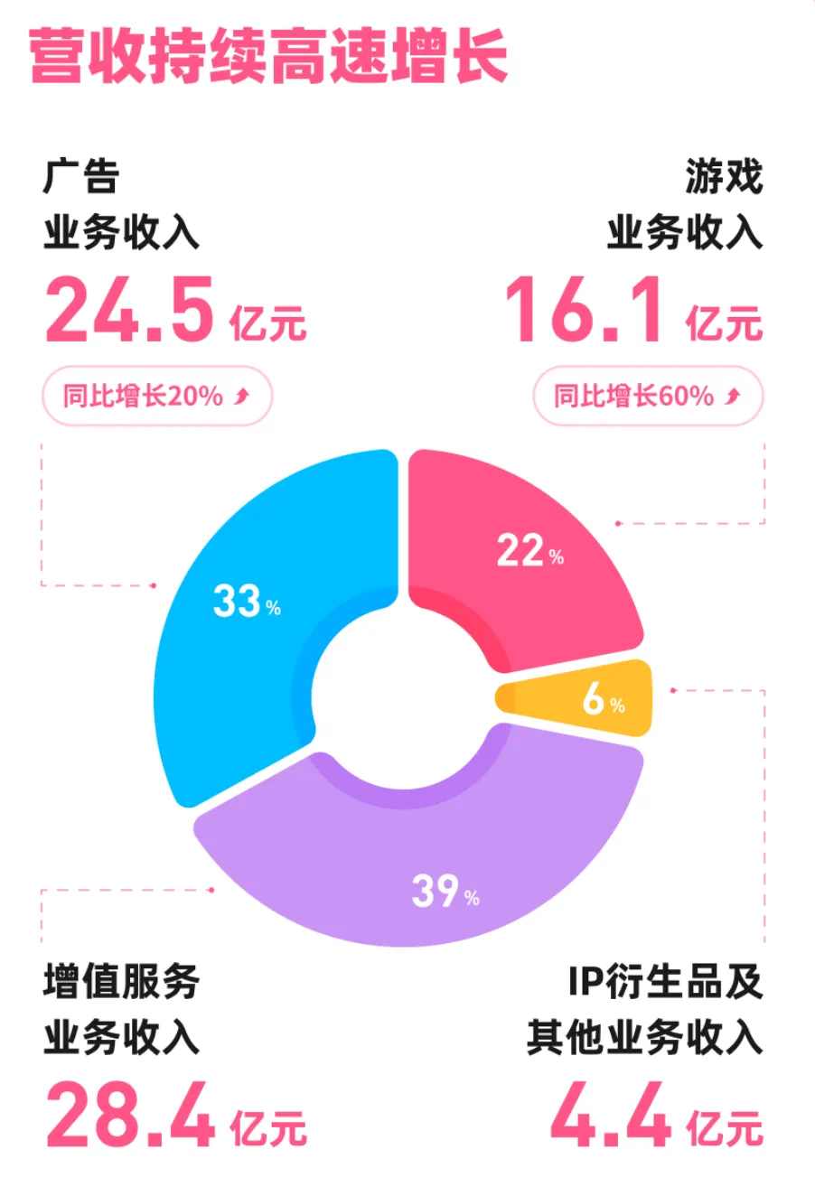 还有一大问题就是用户增长触顶,Q2日均活跃用户数(DAU)1.09亿,仅同比增长7%,过去这一数值达到10%+;月均活跃用户数(MAU)3.63亿,同比增长8%;月均付费用户数(MPU)达到3100万,同比增长9%。