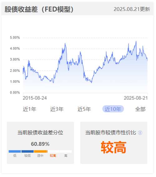 2025年4月份以来,随着市场的上涨,当前A股的风险溢价有所回落,但仍然处于中位数以上,因此权益资产相比债券或仍然具有一定的性价比。