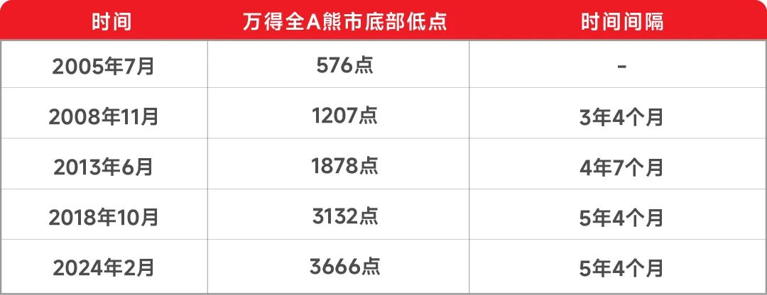 从时间长度看,A股的牛熊周期一般会经历3-5年,最短的是3年4个月,最长的是5年4个月,平均为4年7个多月。
