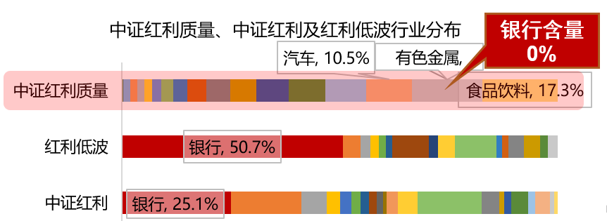 截至最新,中证红利质量指数单一行业权重上限在20%以内,前三大行业依次为食品饮料、有色金属和汽车,显著区别于部分其他红利指数,例如,红利低波动指数中银行股权重超过50%,行业集中度较高。更均衡的分布也降低了单一行业波动对整体表现的影响。