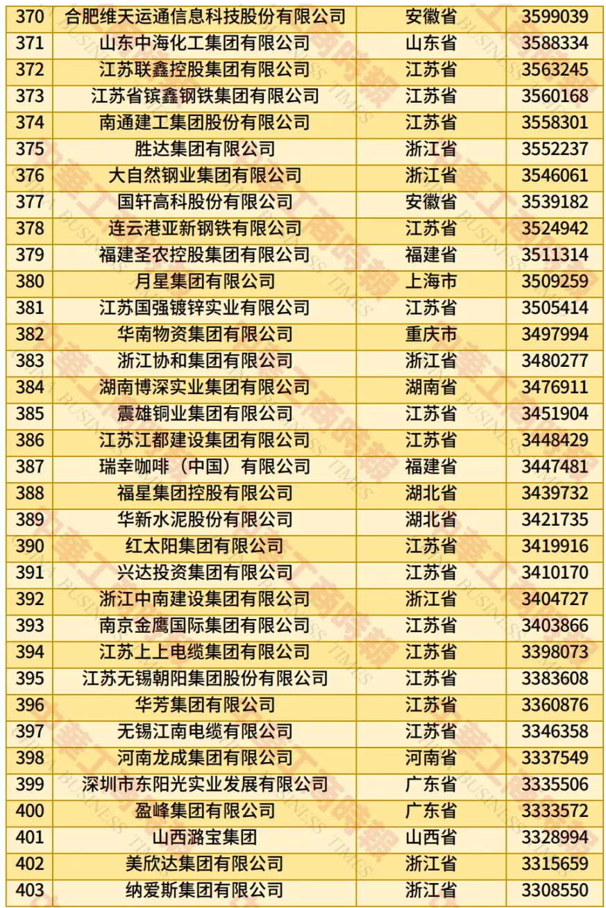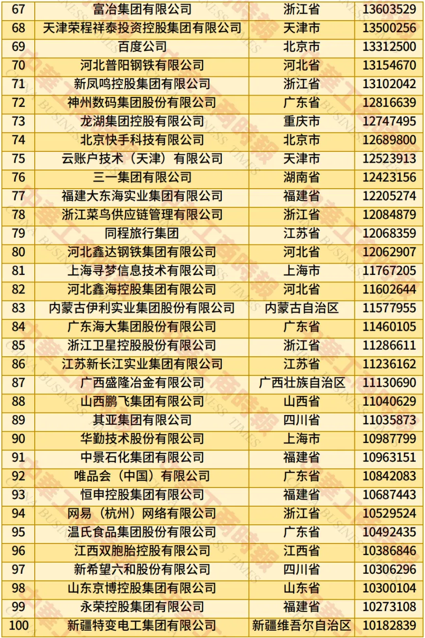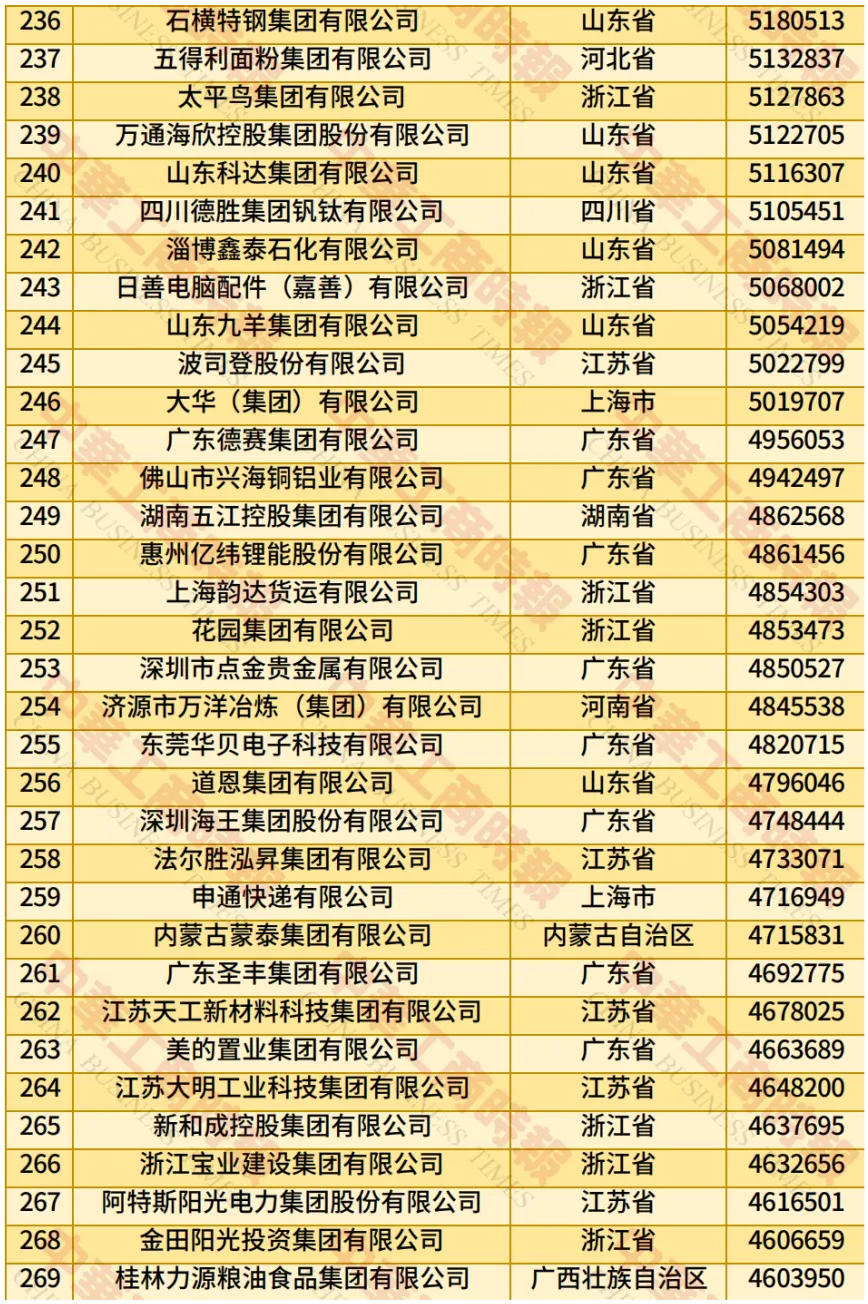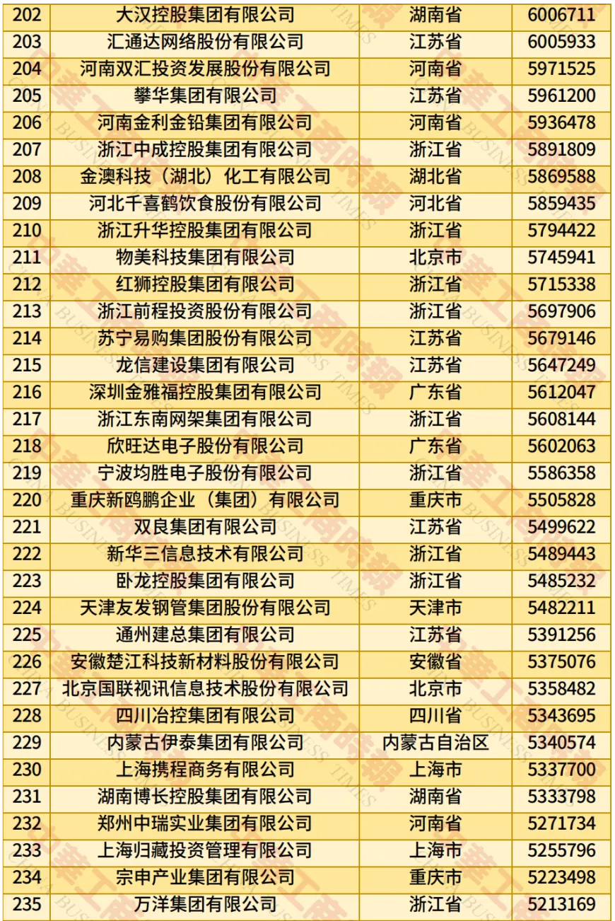 据新华社,此次民营企业500强入围门槛增至270.23亿元;营业收入总额达到43.05万亿元;净利润合计1.80万亿元;研发费用总额1.13万亿元,研发人员总数115.17万人,平均研发经费投入强度2.77%;纳税总额达1.27万亿元,纳税额超过10亿元的企业有240家,占500强比例为48.00%。
