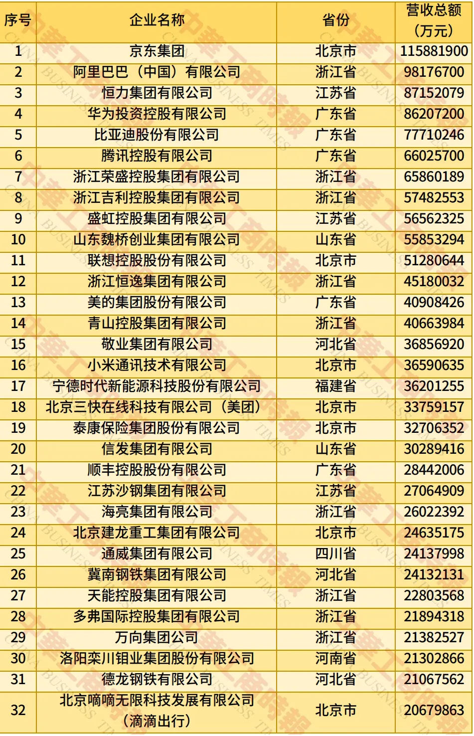 8月28日,全国工商联在辽宁沈阳发布“2025中国民营企业500强”。结果显示,京东集团、阿里巴巴(中国)有限公司、恒力集团有限公司位居前三。