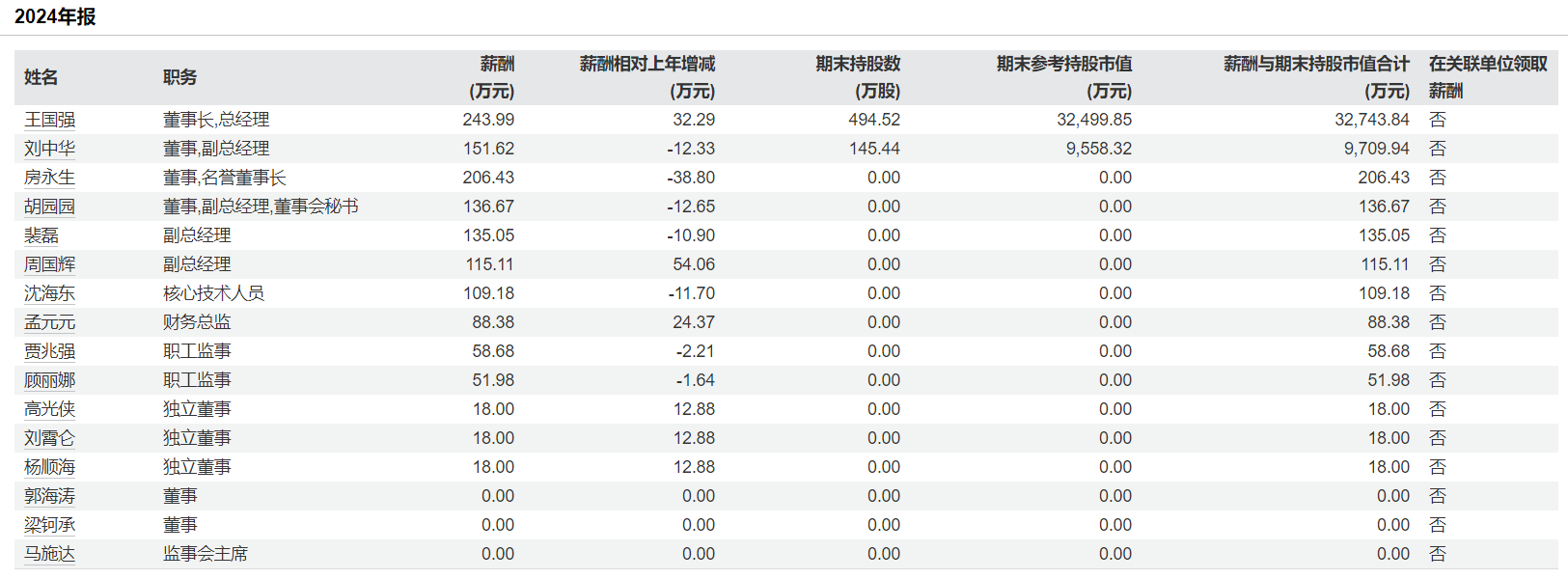21财经·南财快讯记者查阅发现,本次自愿提出降薪的7位高管中,有5位在2024年年薪超百万元。其中,房永生的年薪为206.43万元,王国强的年薪为243.99万元,董事、副总经理刘中华的年薪为151.62万元。