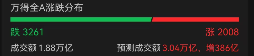 盘面上,超3200股飘绿,2000股飘红,成交额1.88万亿。