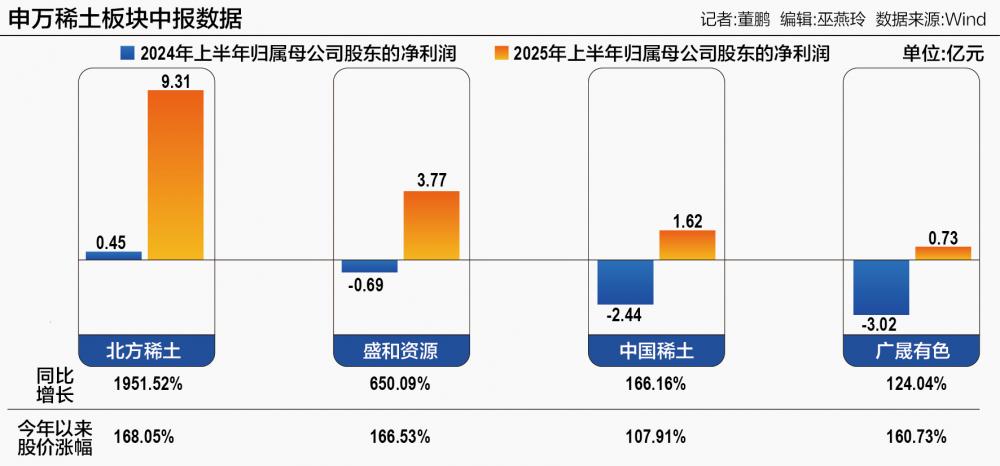 截至8月末,由北方稀土、中国稀土4家公司构成的申万稀土板块,今年以150.8%的平均涨幅位居申万300多个细分行业的首位。