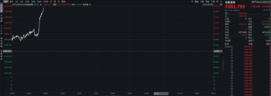 9月2日,现货黄金盘中突破3500美元/盎司,创下历史新高。年初至今,金价累计涨幅超33%。