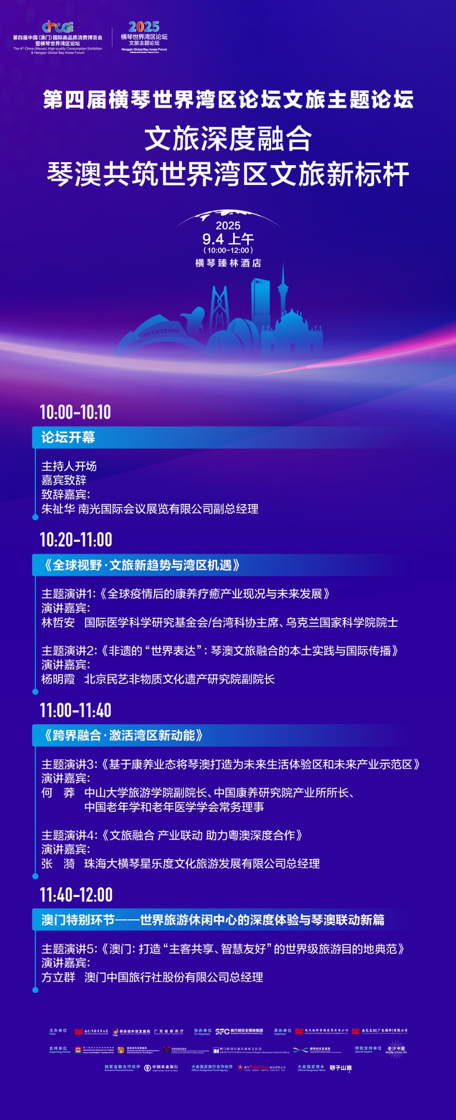 本次论坛将紧扣“文旅深度融合·琴澳共筑世界湾区文旅新标杆”核心主题,围绕演艺、美食、博物馆、数字艺术、景区、体育、动漫电竞等文旅细分领域,以“全球视野+本土实践”“科技赋能+文化传承”“跨境协同+主客共享”为三大主线,探索“文旅+”多业态融合创新路径,深化琴澳协同与国际合作,助力澳门建设“多元文化共融、历史与现代交织”的世界级旅游休闲中心,同时将横琴打造为“湾区文旅共同体”的国际会客厅,推动大湾区文旅产业全球化竞争力提升。