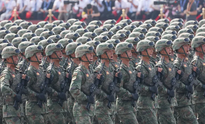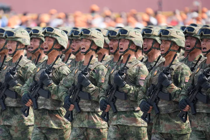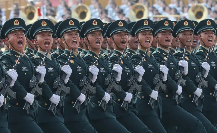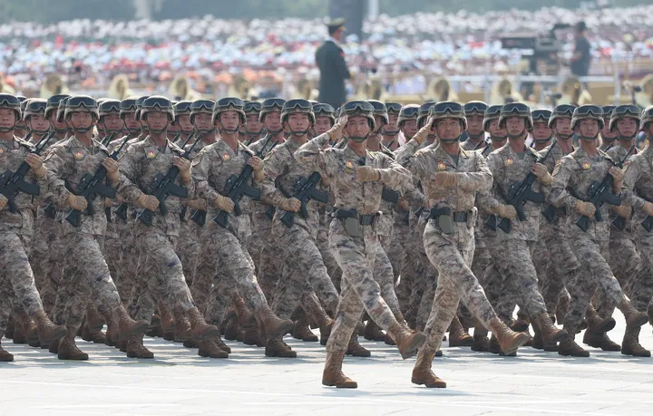 9月3日,纪念中国人民抗日战争暨世界反法西斯战争胜利80周年大会在北京隆重举行。这是中国人民解放军仪仗方队接受检阅。新华社记者 刘金海 摄