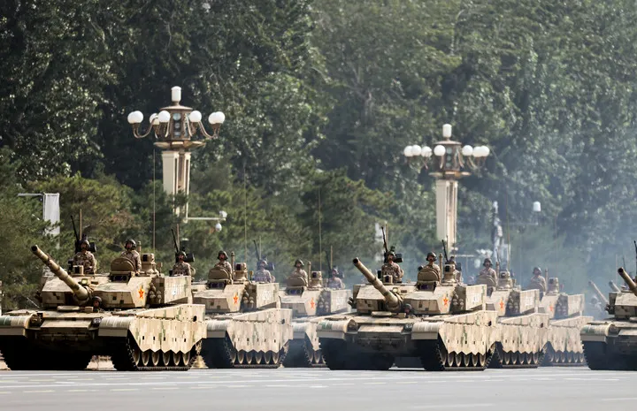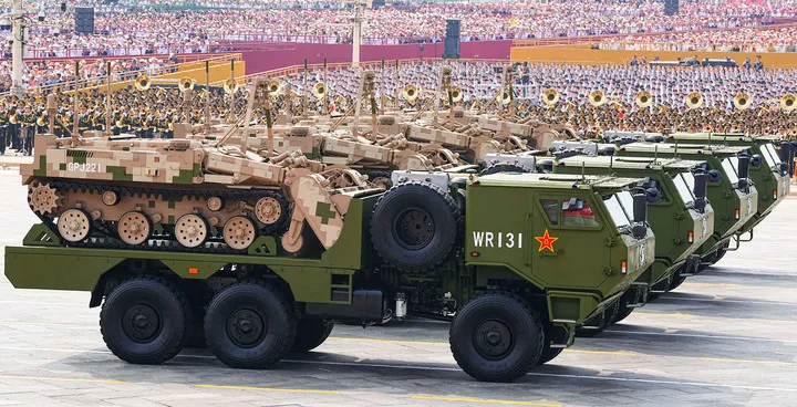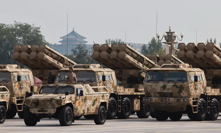 9月3日,纪念中国人民抗日战争暨世界反法西斯战争胜利80周年大会在北京隆重举行。这是远程火炮方队接受检阅。新华社记者 王晔 摄