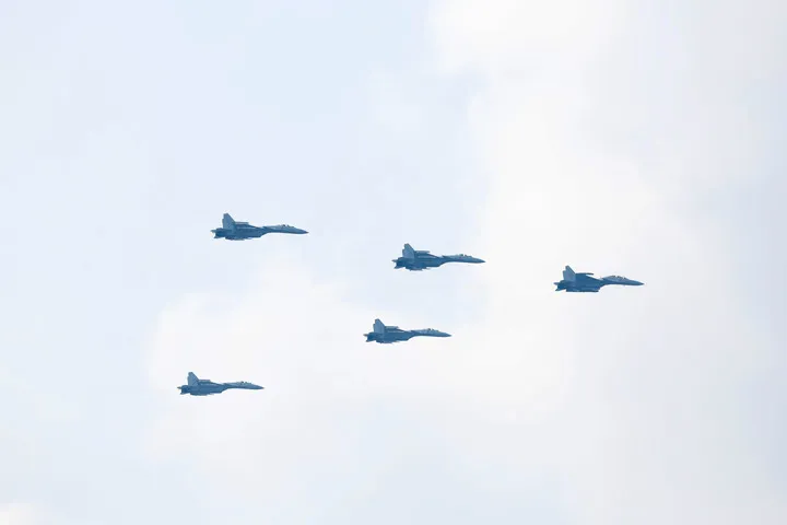 梯队由歼-16D、歼-20、歼-20A、歼-20S、歼-35A组成。