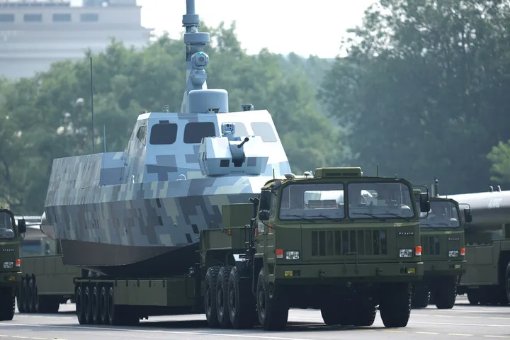 9月3日,纪念中国人民抗日战争暨世界反法西斯战争胜利80周年大会在北京隆重举行。这是海上无人作战方队接受检阅。新华社记者 刘潺 摄