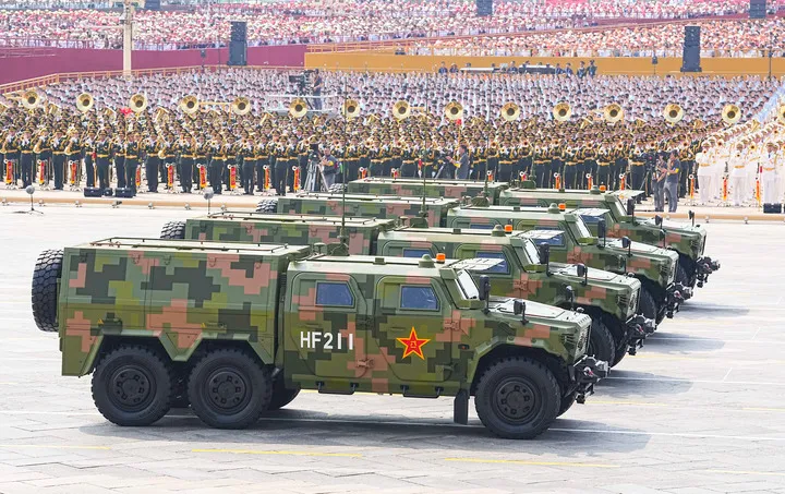 9月3日,纪念中国人民抗日战争暨世界反法西斯战争胜利80周年大会在北京隆重举行。这是信息支援方队接受检阅。新华社记者 邢广利 摄