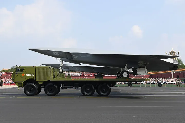 9月3日,纪念中国人民抗日战争暨世界反法西斯战争胜利80周年大会在北京隆重举行。这是轰炸机梯队接受检阅。新华社记者 孙凡越 摄