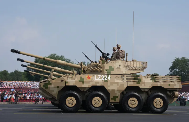 受阅的两栖轮式装甲步兵战车、两栖轮式装甲突击车和两栖轮式自行榴弹炮车,都是国产新型装备,是海军陆战队遂行两栖登陆作战、纵深快速夺要、应急快反处突等多样化军事任务的主战装备,具有很强的两栖机动能力、适应复杂环境能力、通联协同能力、火力打击和防护拓展能力,是我军两栖作战能力迭代升级的强大战力支撑。