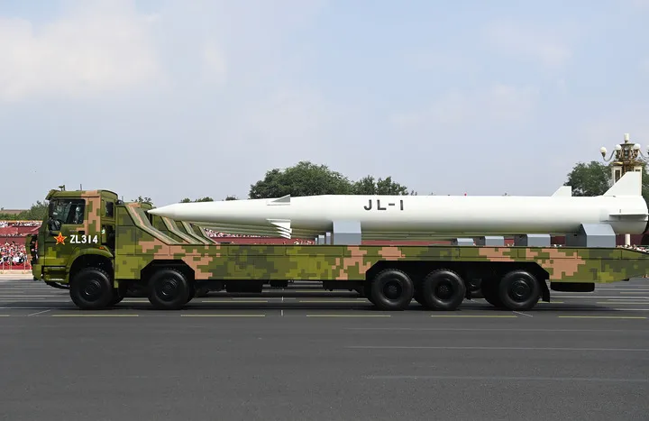 9月3日,纪念中国人民抗日战争暨世界反法西斯战争胜利80周年大会在北京隆重举行。这是核导弹第一方队接受检阅。新华社记者 范培珅 摄