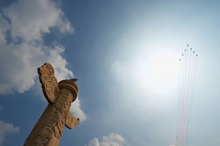 这是教练机梯队通过天安门广场。新华社记者 刘颖 摄