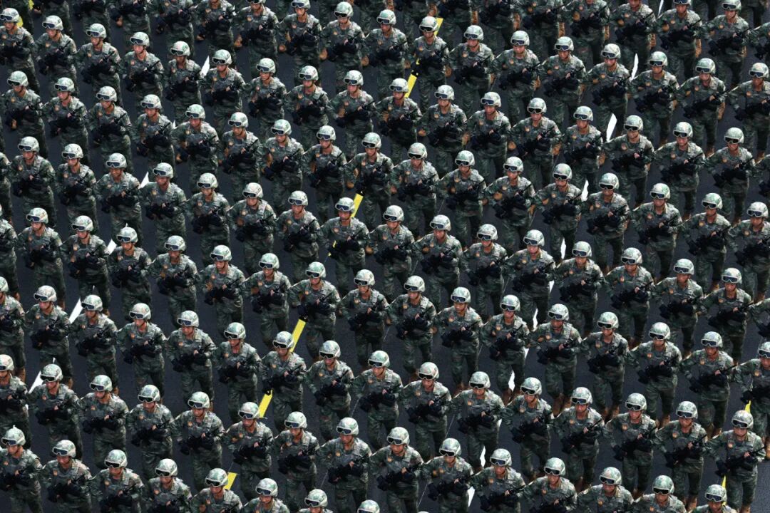这是纪念大会开始前,受阅部队在准备。新华社记者 林煜 摄