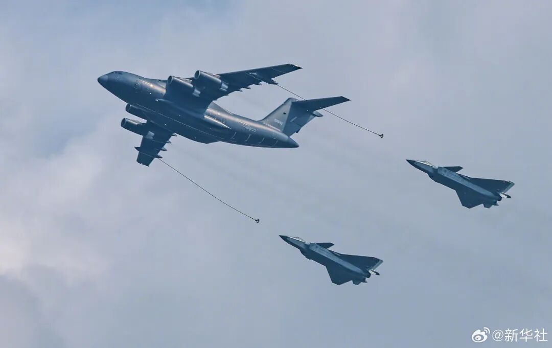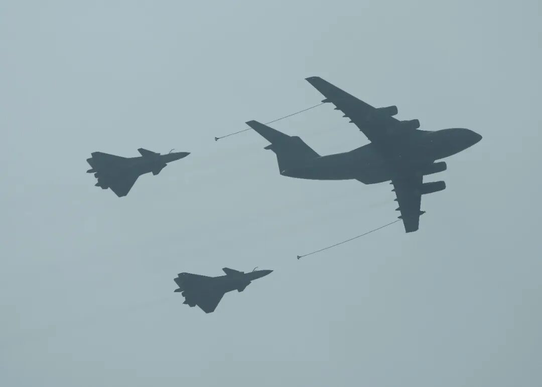 这是加受油机梯队从空中飞过。新华社记者 肖艺九 摄