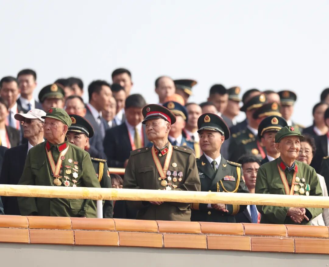 这是抗战老战士在天安门城楼上敬礼。新华社记者 才扬 摄
