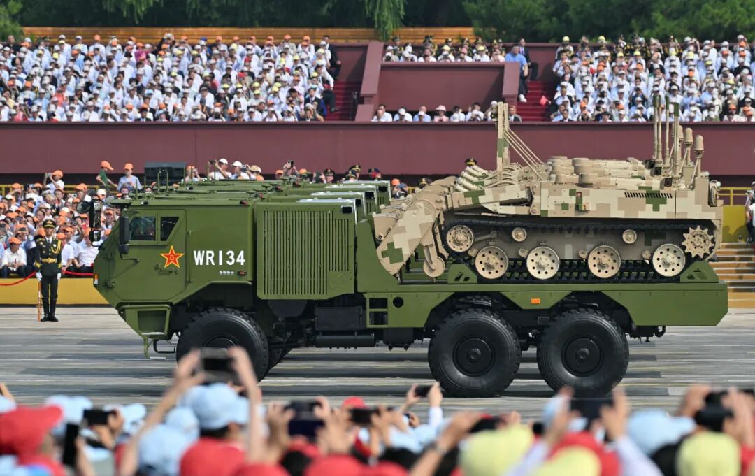 这是陆上无人作战方队接受检阅。新华社记者 李一博 摄