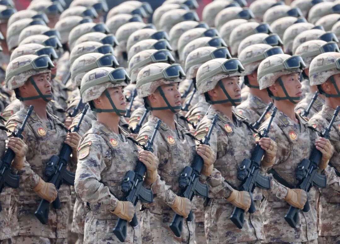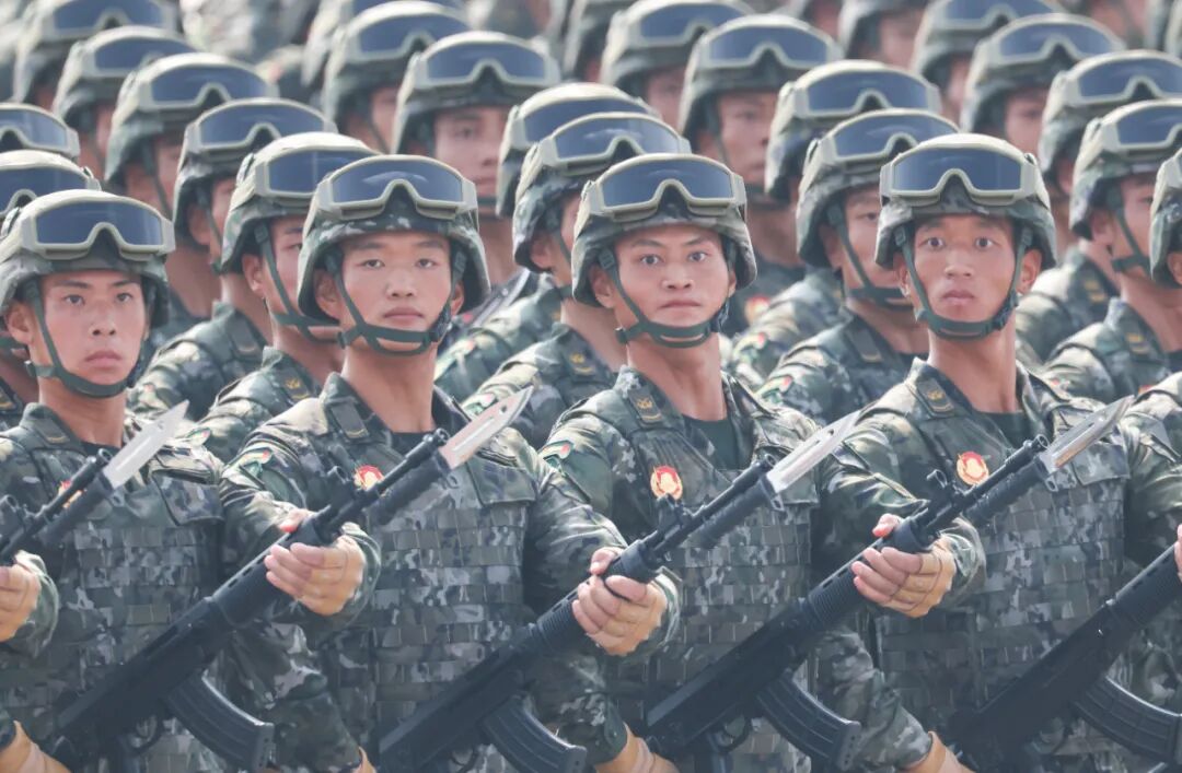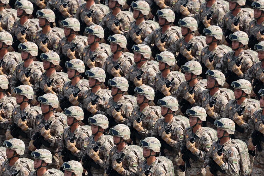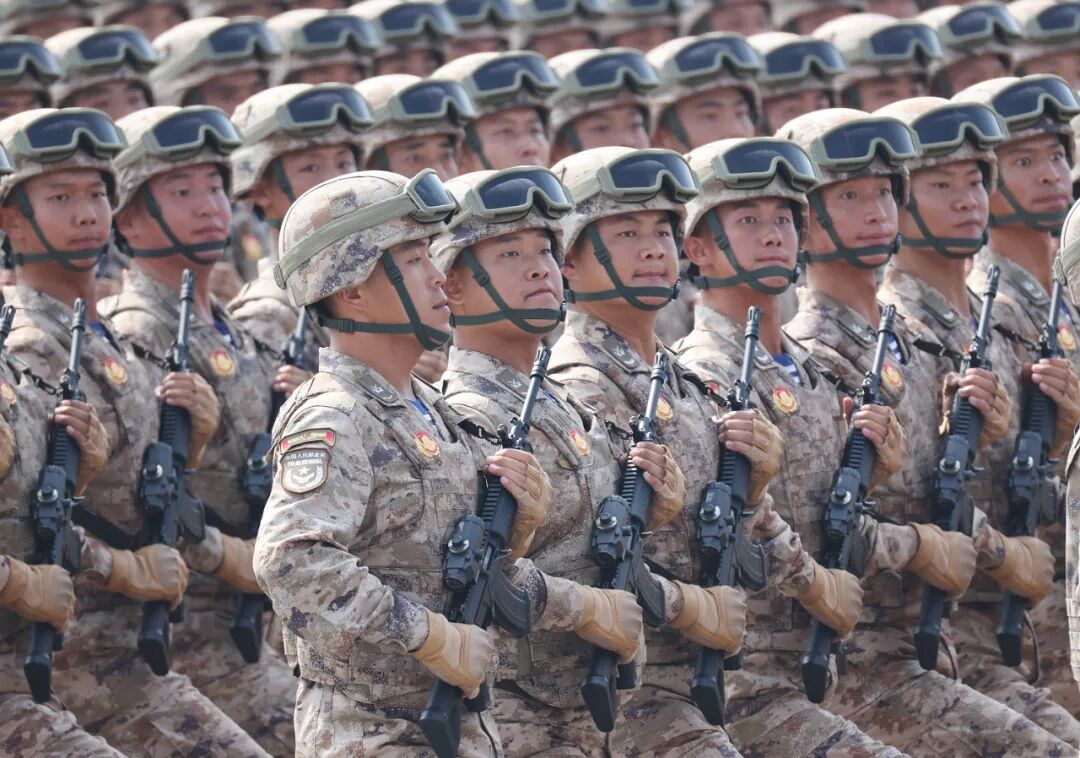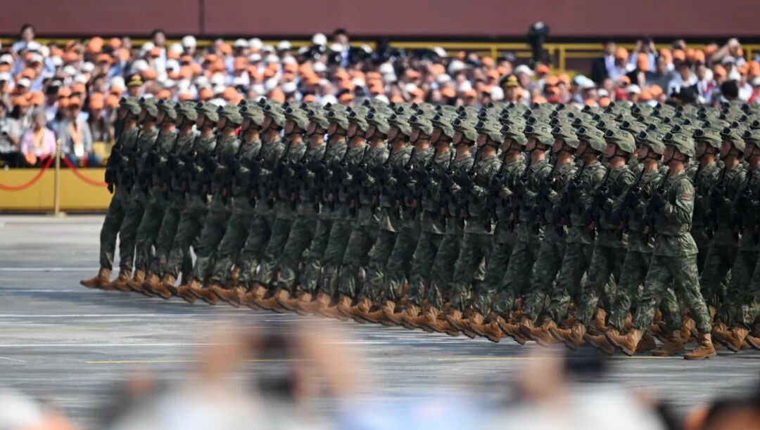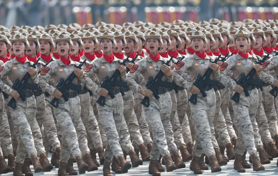 这是民兵方队接受检阅。新华社记者 毛思倩 摄