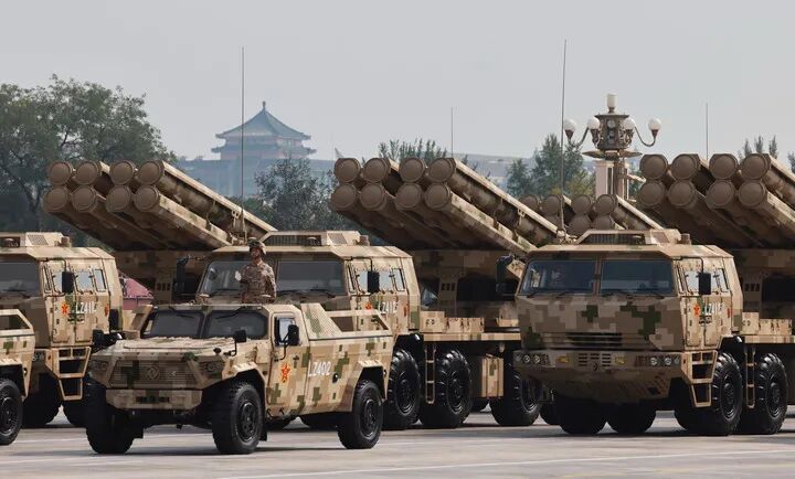 这是远程火炮方队接受检阅。新华社记者 王晔 摄