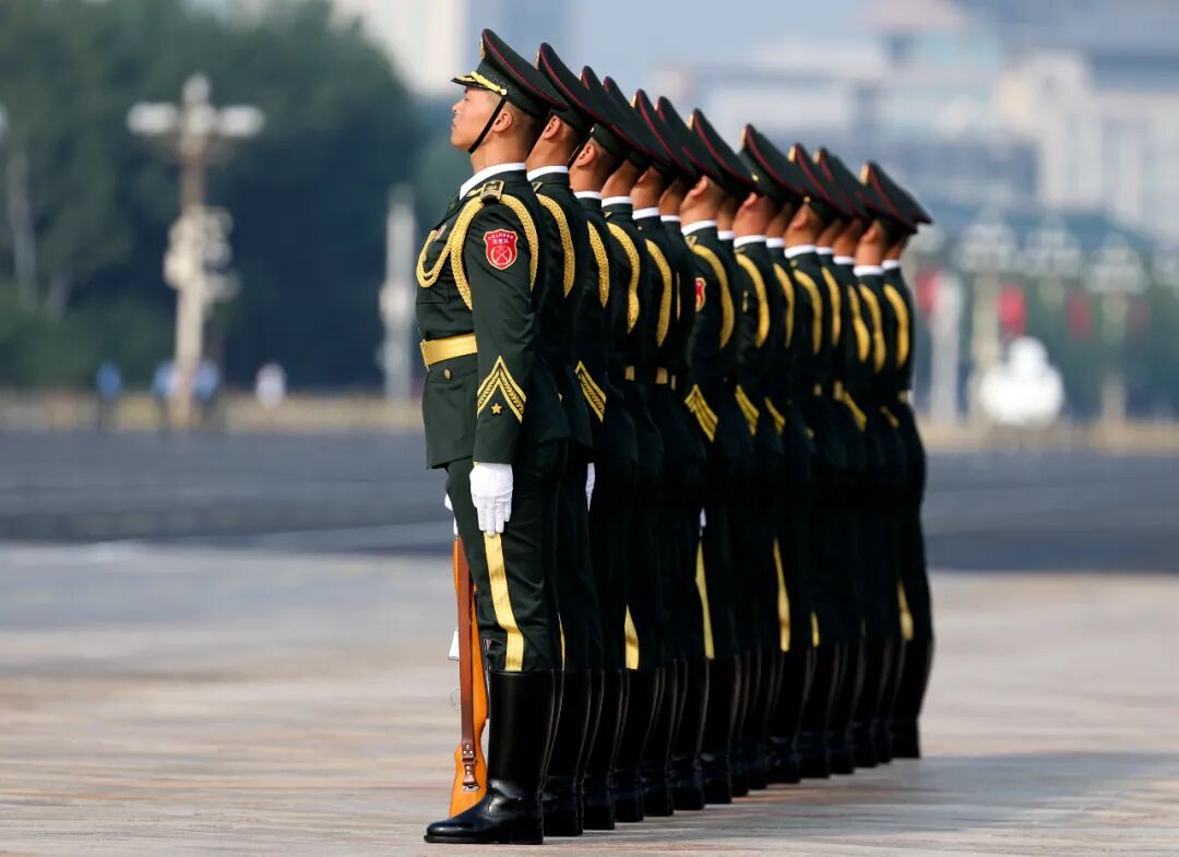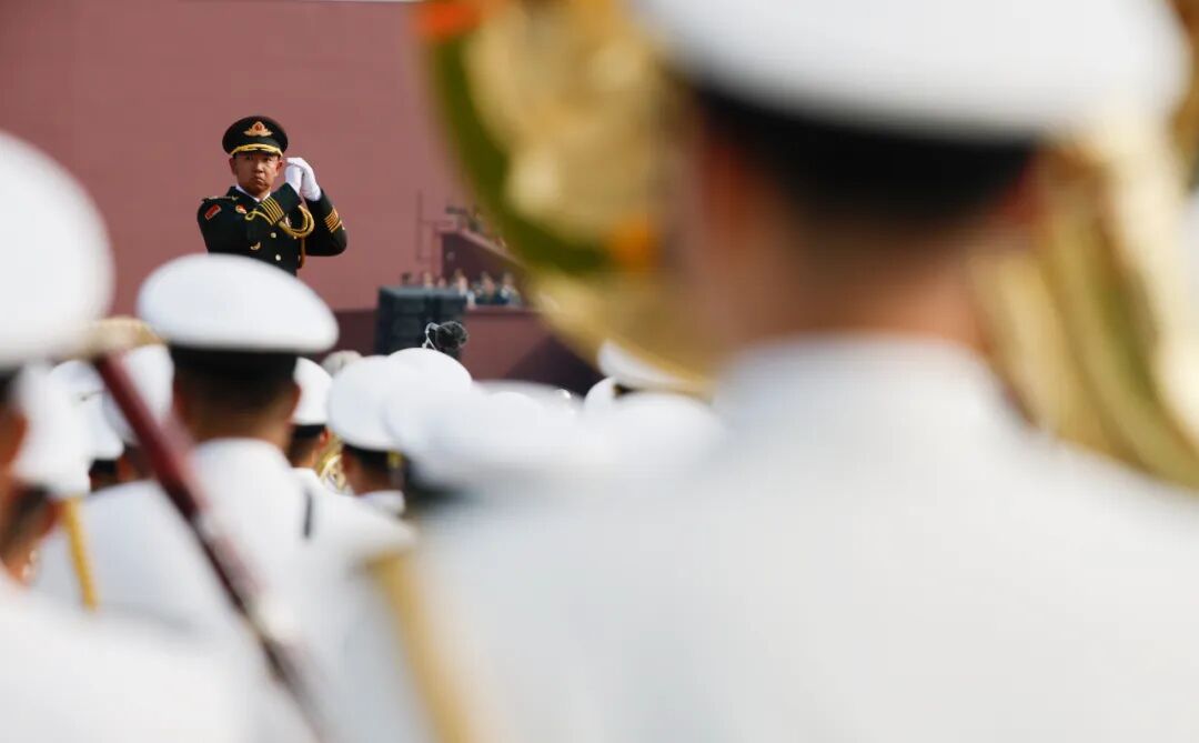 这是中国人民解放军仪仗方队接受检阅。新华社记者 刘续 摄